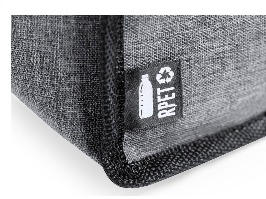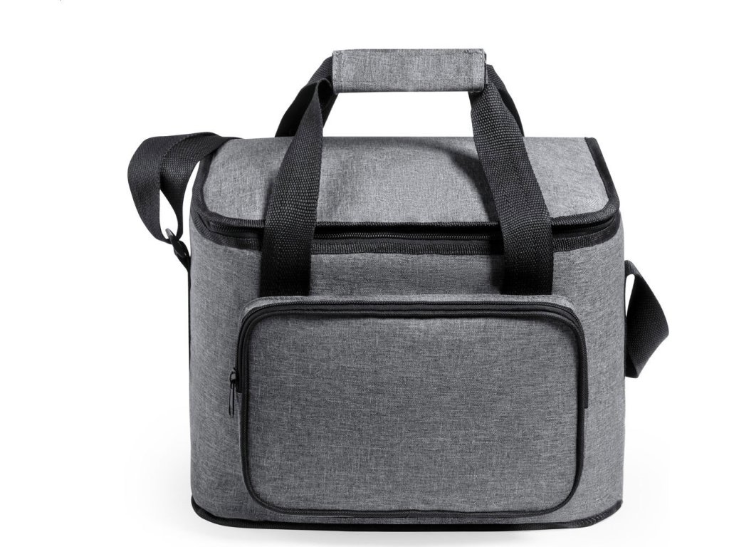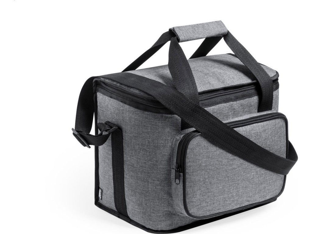 Chladicí taška RPET s polstrováním PEVA, přihrádkami na zip, ucha se suchým zipem a nastavitelným ramenním popruhem. S výrazným štítkem RPET. 600D RPET polyester.