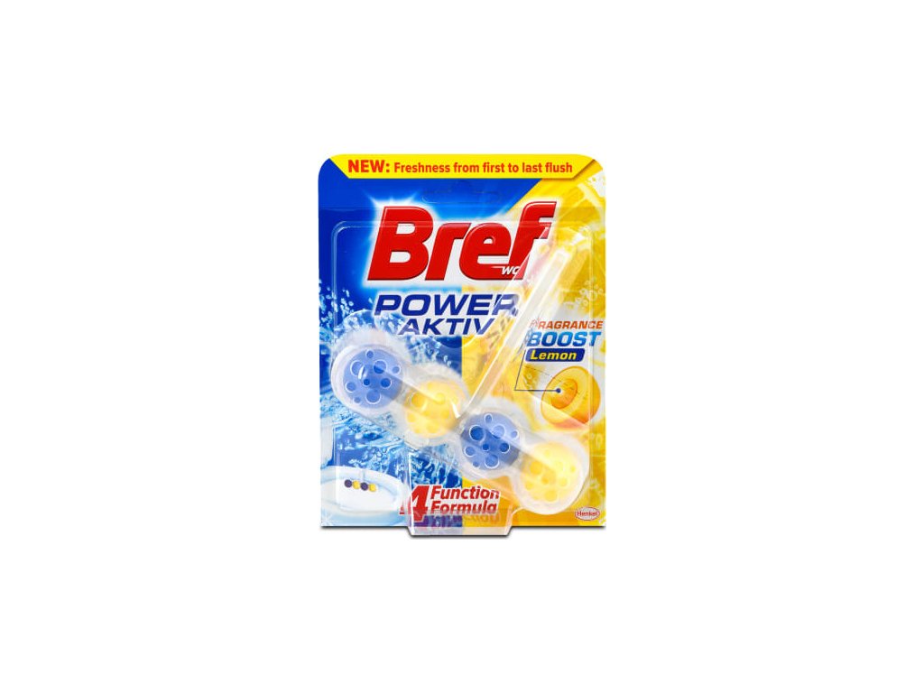 WC blok Bref Power Aktiv s vůní citronu představuje novou generaci WC bloků. Nejenže udrží vaši toaletu hygienicky čistou s každým spláchnutím, ale navíc ji ozvláštní zajímavým designem.