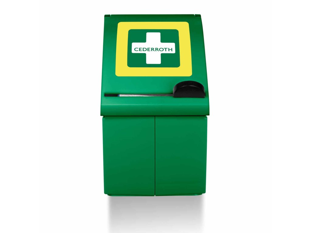 Zásobník s nástěnným držákem na lepicí omítku Cederroth 6 cm x 4,5 m. Vestavěná řezačka pro rychlé a snadné použití lepicí pásky. Může být také použit stojící na stole, pokud je odstraněn nástěnný držák. 6 cm x 4,5 m vyplněno modrou trhací a řezanou lepicí páskou. Dodává se s jasným návodem k použití. Zdravotnický prostředek s označením CE.