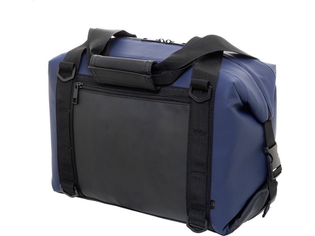 Skládací chladící taška na zip z měkké recyklované PU kůže s hliníkovou výplní a přední kapsou na zip. S bočními přezkami, držadly a nastavitelným ramenním popruhem. Tašku lze složit naplocho pro snadné skladování nebo ji během používání zajistit pomocí bočních výztuh.