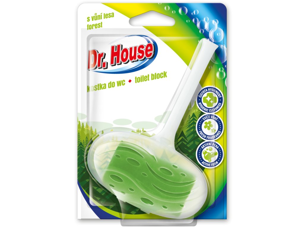 WC kostka čistí záchodovou mísu, zamezuje vzniku vodního kamene, tvoří bohatou pěnu, zanechává svěží příjemnou vůni lesa.