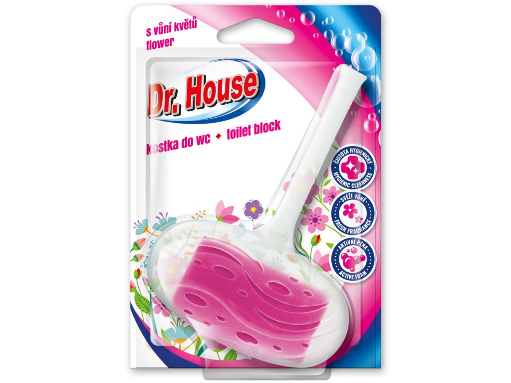 WC kostka čistí záchodovou mísu, zamezuje vzniku vodního kamene, tvoří bohatou pěnu, zanechává svěží příjemnou vůni květů.