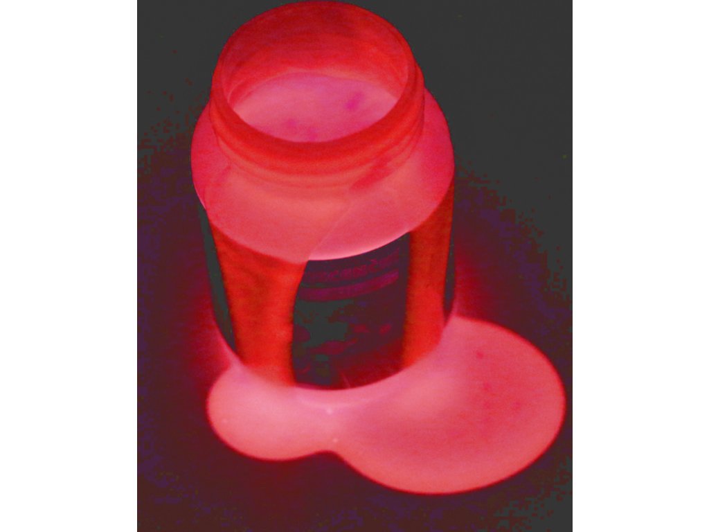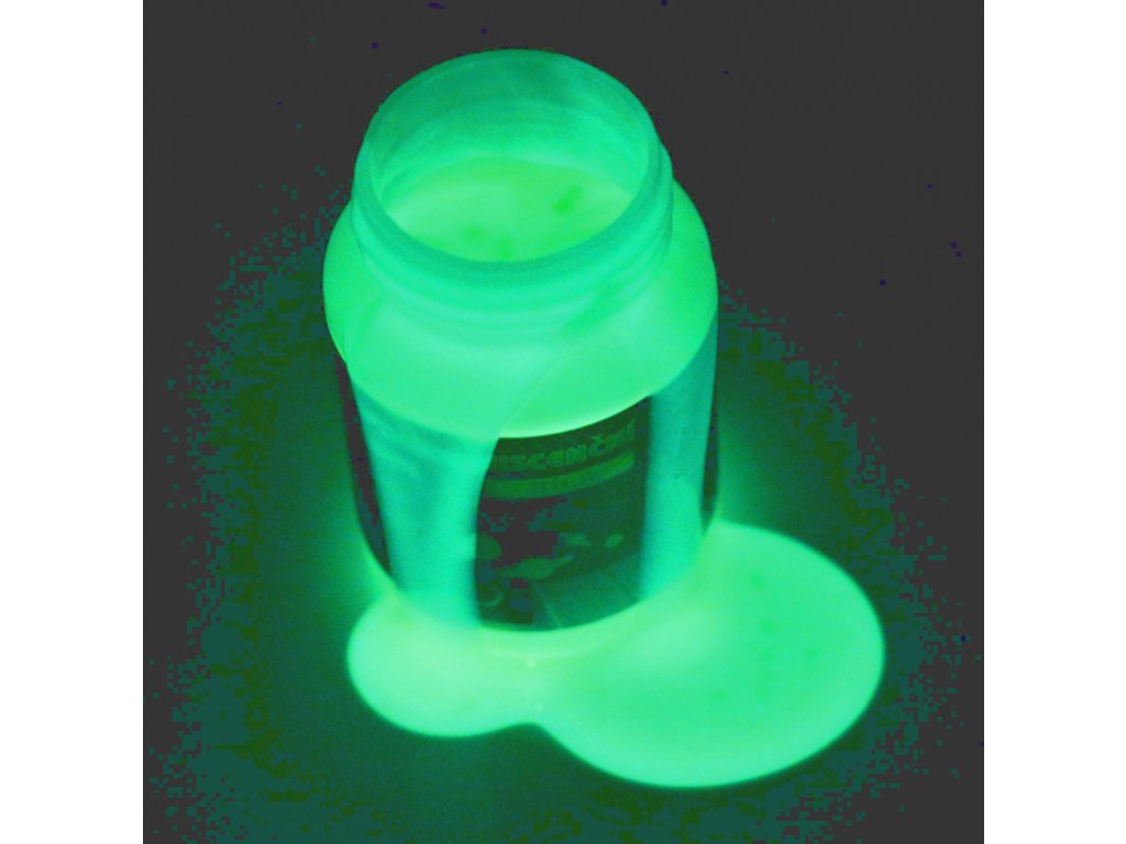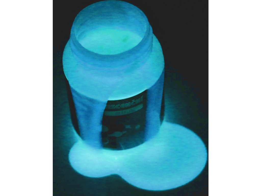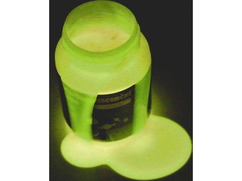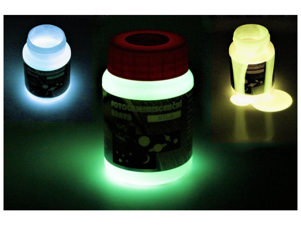 Svítící barvy, které se dají používat stejně jako běžné akrylátové barvy. Mohou se nanášet na stěny, kov, dřevo, tkaniny, beton a pod. Balení v plastových nádobkách s možností opětovného hermetického uzavření.
