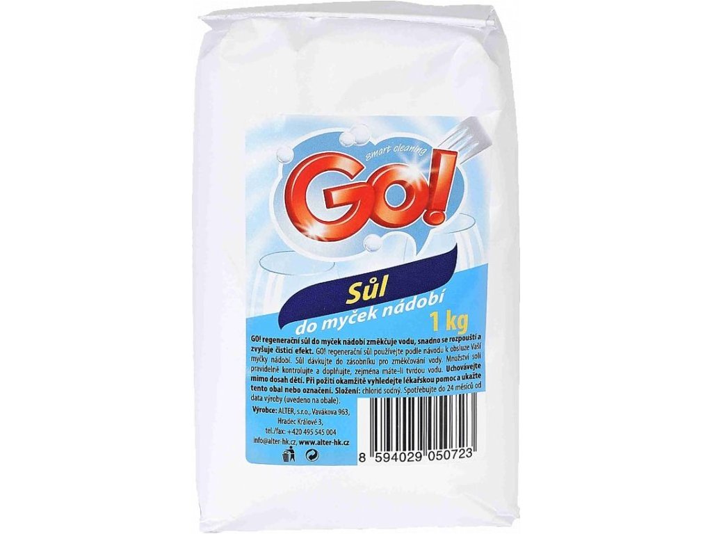 GO! SŮL DO MYČEK NÁDOBÍ změkčuje vodu, snadno se rozpouští a zvyšuje čistící efekt. Zabraňuje vzniku vodního kamene.