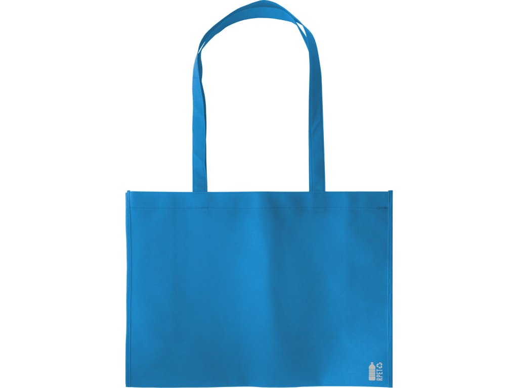 Nákupní taška z netkané textilie RPET s klínem a dlouhými uchy, 80 g/m². S výrazným logem RPET.