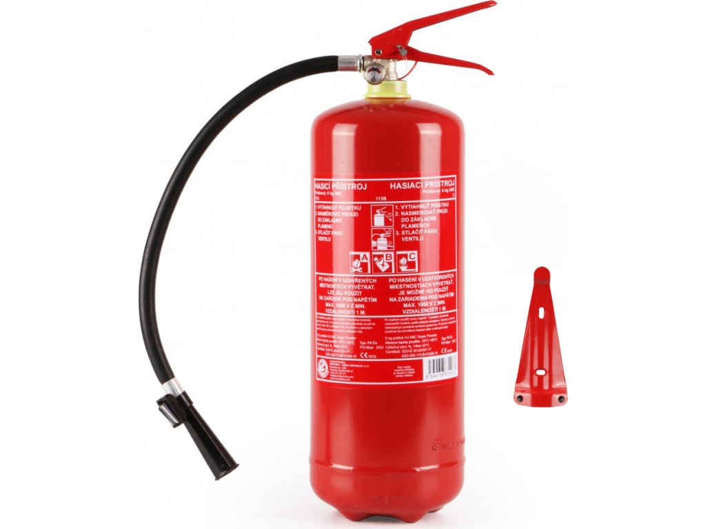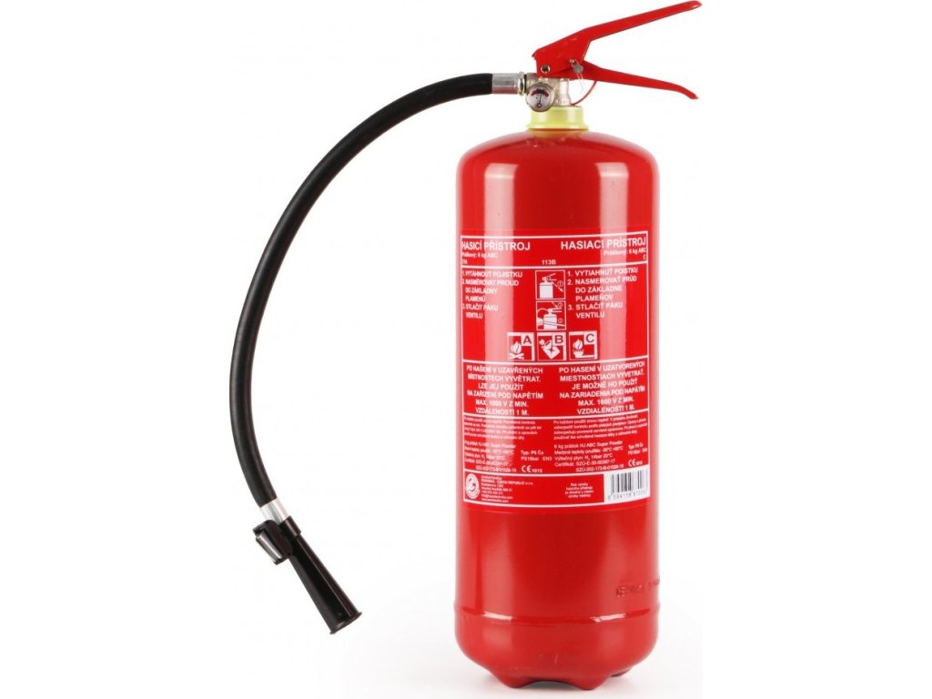 Hasicí přístroj práškový 6kg vhodný k hašení: elektrických zařízení pod proudem, hořlavých plynů, benzínu, nafty, olejů, pevných materiálů, počítačů, televizorů a další elektroniky.