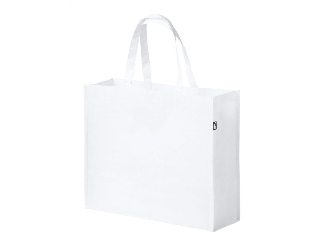 Ekologická nákupní taška z RPET polyesteru, s polaminovaným povrchem, 105 g/m², s etiketou s označením RPET.