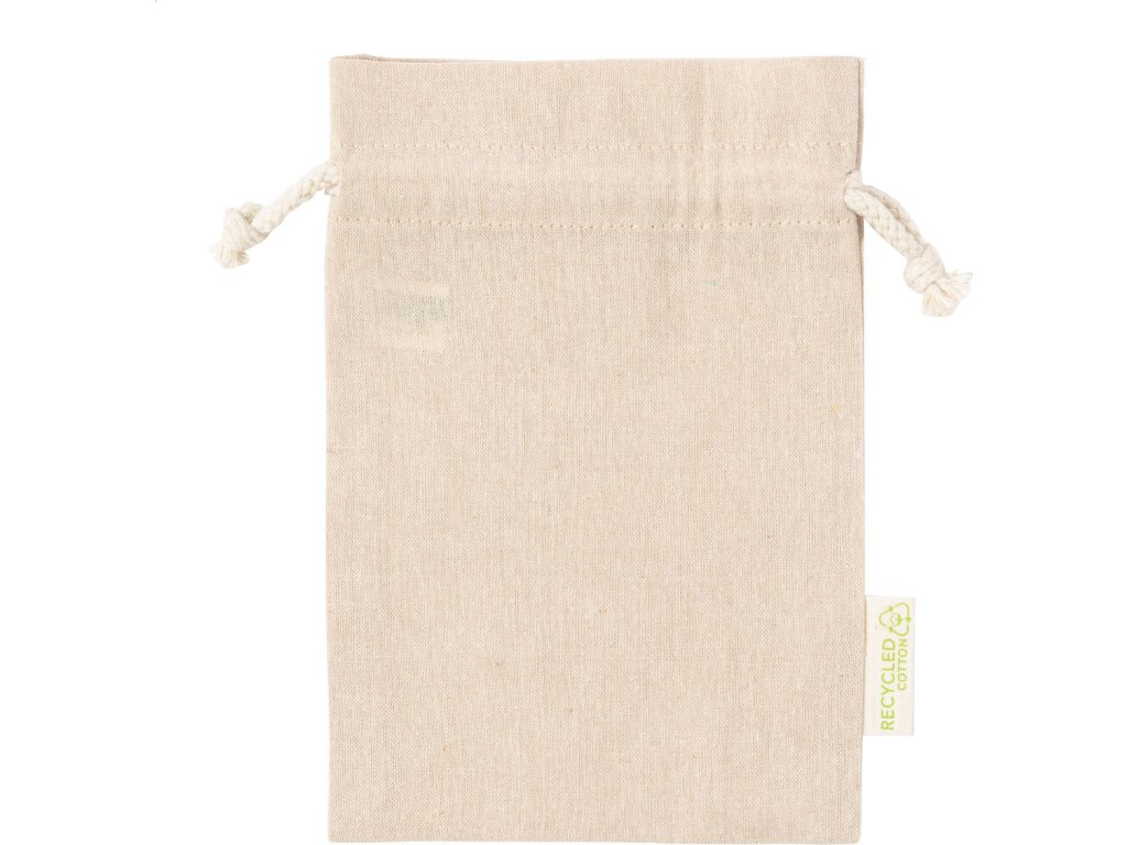 Opakovaně použitelný pytlík na potraviny z recyklované bavlny se stahování na šňůrku. 100% recyklovaná bavlna, 120 g/m².