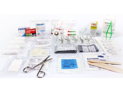 Vybavení lékárničky pro kotelnu odpovídá rizikům daného pracoviště - popáleniny, zlomeniny, opaření či podráždění očí. Pro pracoviště do 20 zaměstnanců.
