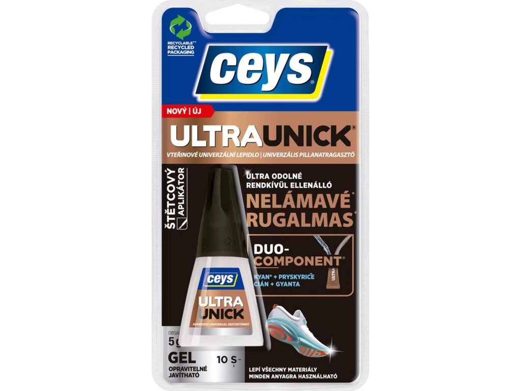 CEYS ULTRA UNICK GEL je univerzální vteřinové nelámavé a ultra pevné lepidlo, ultra rychlé a bezpečné.