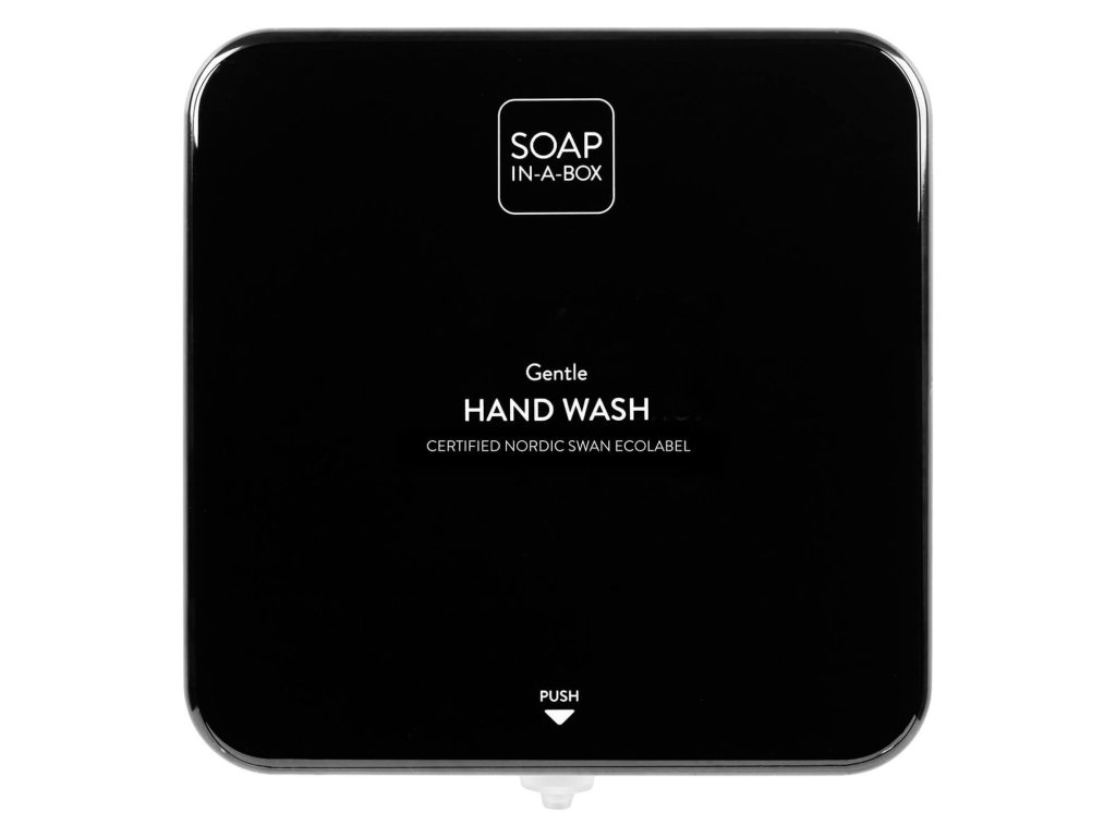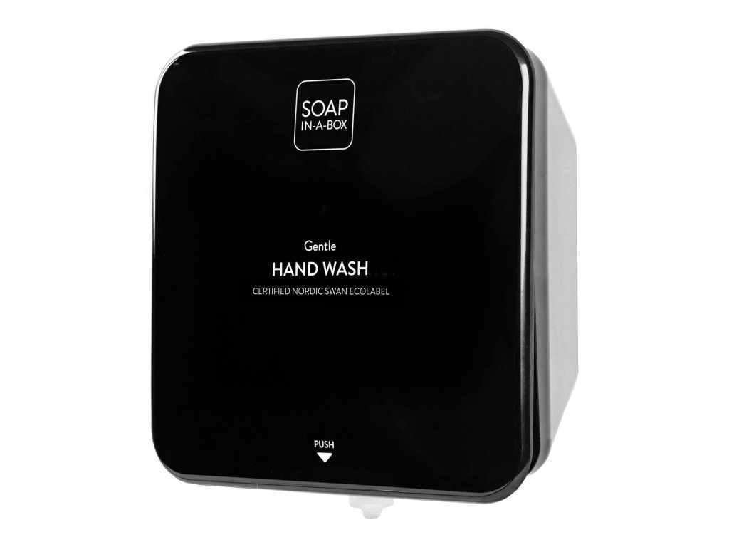 Koncept dávkovače Soap-In-A-Box kombinuje eleganci a efektivitu, přičemž je šetrný k pokožce a životnímu prostředí. Dávkovač je dodáván s 450 ml vzduchotěsným doplňovacím sáčkem s pevnou dávkou 2 ml, což umožňuje průměrně 225 umytí rukou.