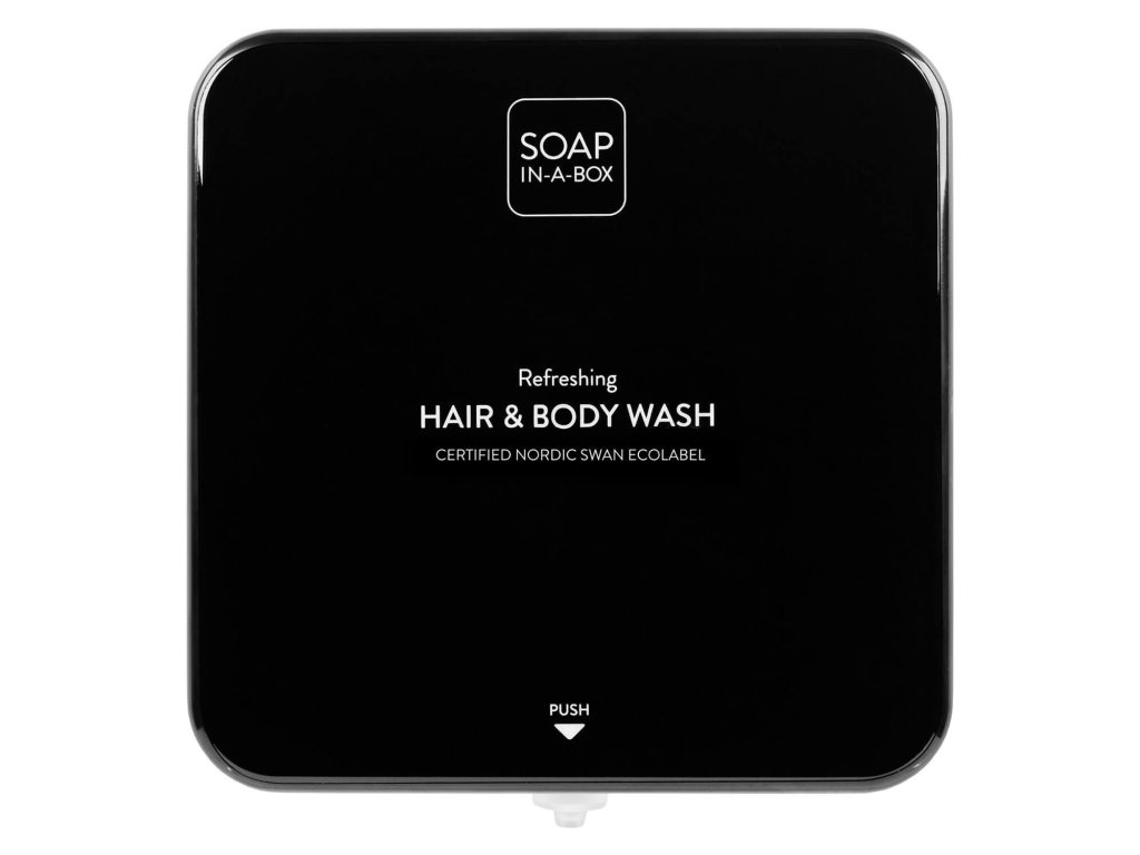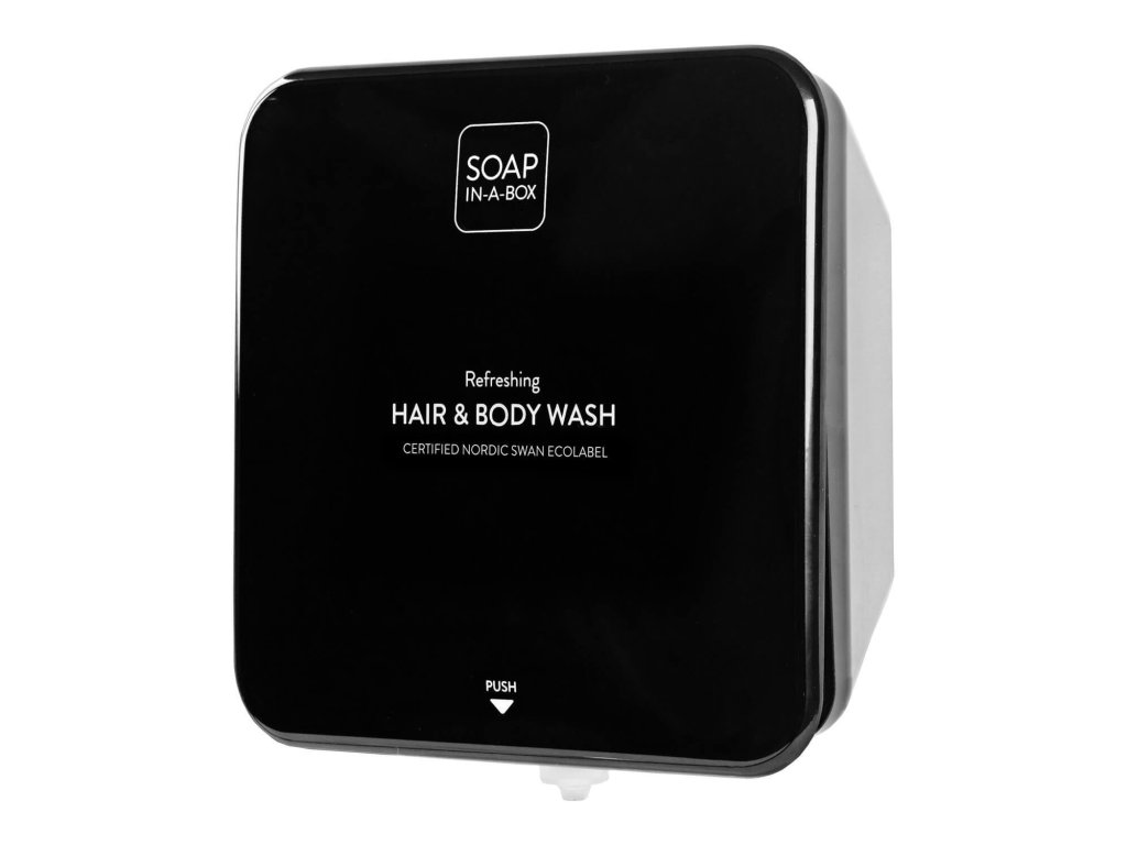 Koncept dávkovače Soap-In-A-Box kombinuje eleganci a efektivitu, přičemž je šetrný k pokožce a životnímu prostředí. Dávkovač je dodáván s 450 ml vzduchotěsným doplňovacím sáčkem s pevnou dávkou 2 ml, což umožňuje průměrně 225 použití.