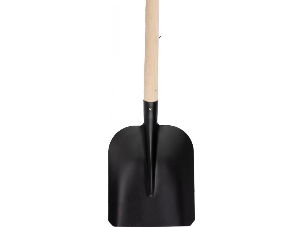 Černá lopata s dřevěnou násadou. Rozměr lopaty: 28x23,5 cm.