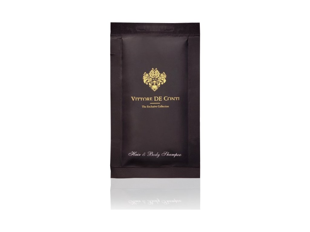 Luxusní hotelový vlasový a tělový šampón v sáčku 10ml Vittore de Conti