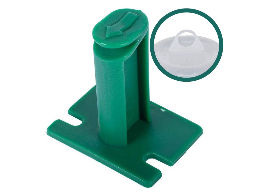 Nástěnný držák na přípravky na vyplachování očí, s očkem na dně lahvičky pro zavěšení. Držák se snadno instaluje a poskytuje rychlý přístup k oční vodě v případě nehody.