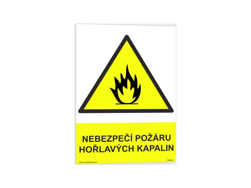 Bezpečnostní tabulka uipozorňující na nebezpečí požáru hořlavých kapalin.