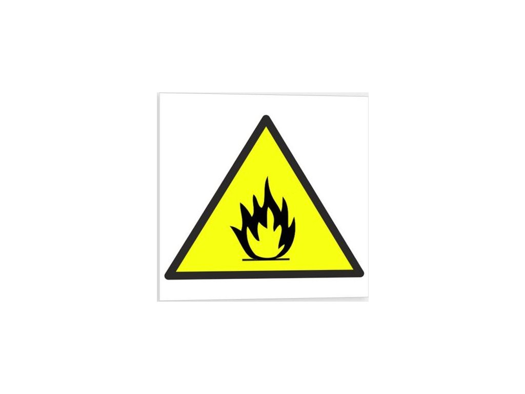 Bezpečnostní tabulka označující prostor s výskytem hořlavých materiálů. Varování může zabránit vzniku požárů a následně škodám na majetku i životech osob.