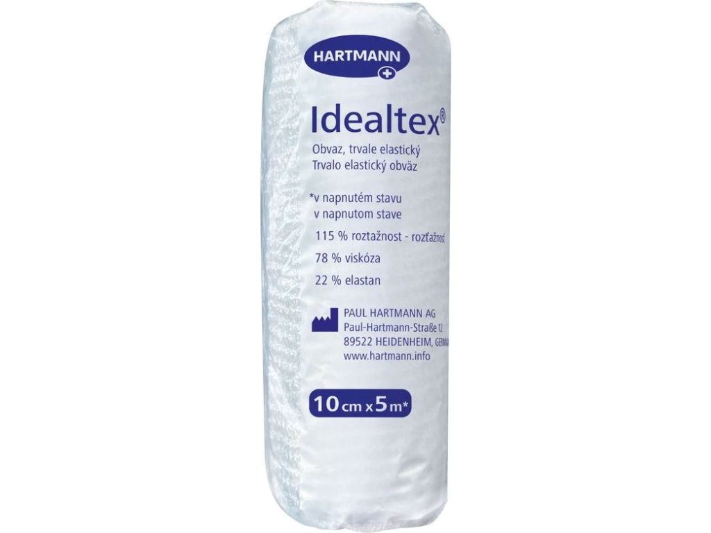 Obväz Idealtex je vysoko kvalitný, trvale elastický obväz určený na fixáciu a spevnenie rôznych častí tela. Vďaka svojej vysokej pružnosti vytvára rovnomerný tlak, ktorý pôsobí len na povrchové žily a zároveň sa výborne prispôsobuje tvaru končatiny. Poskytuje spoľahlivú podporu a stabilitu pri poraneniach, opuchoch alebo pri bežnej prvej pomoci.