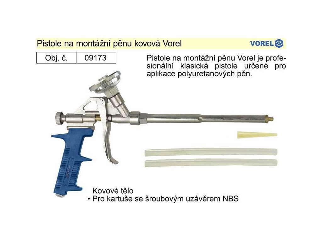 Pistole na montážní pěnu Vorel je profesionální klasická pistole určené pro aplikace polyuretanových pěn.