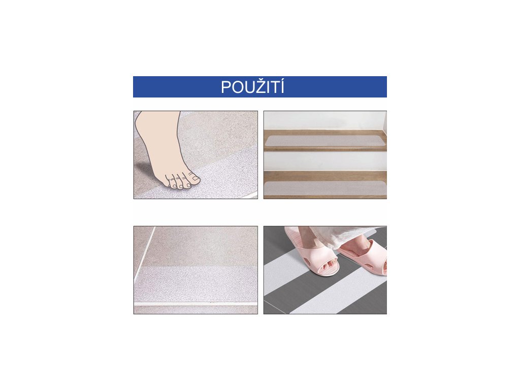 Samolepící transparentní pásy - nášlapy do sprchy, koupelny a mokrých provozů s testovaným protiskluzovým povrchem a vysoce přilnavým lepidlem výrazně snižují riziko uklouznutí na mokrém nebo hladkém povrchu. Neabrazivní povrch umožňuje pohodlné chození bosou nohou.