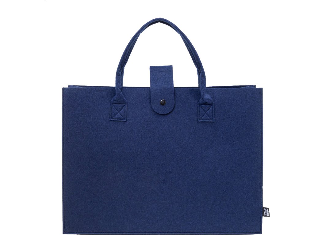 Nákupní taška z RPET plsti s klínkem, zapínáním na knoflíky a krátkými uchy. S výraznou etiketou z RPET.