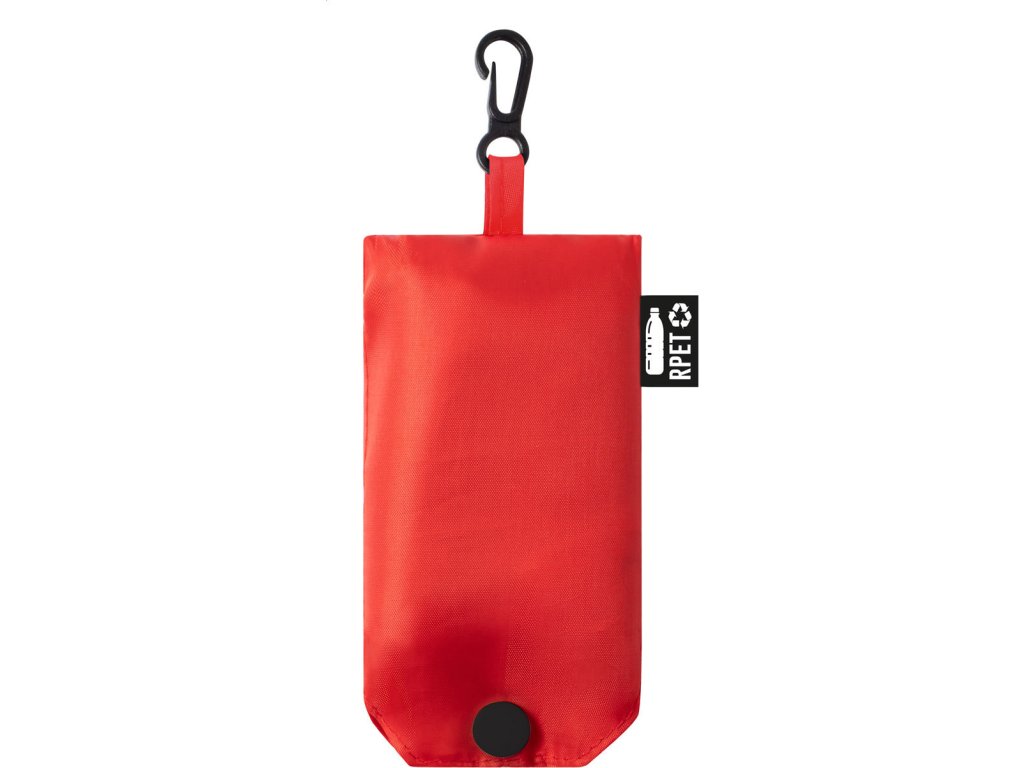 Skládací nákupní taška z RPET polyesteru, s etiketou s označením RPET.