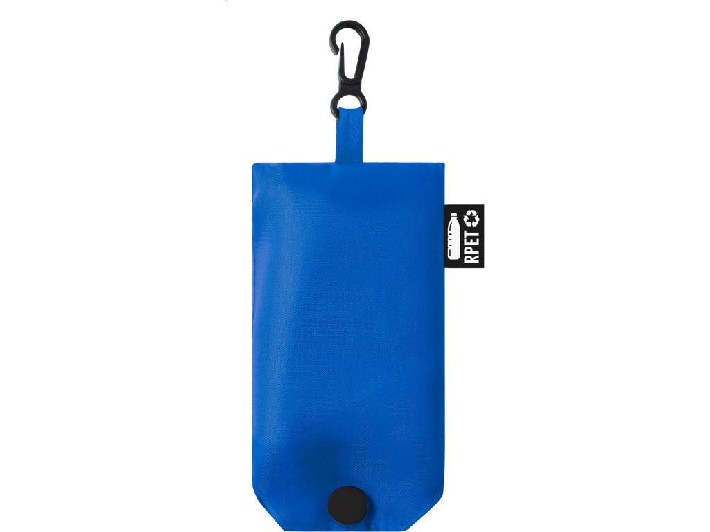 Skládací nákupní taška z RPET polyesteru, s etiketou s označením RPET.