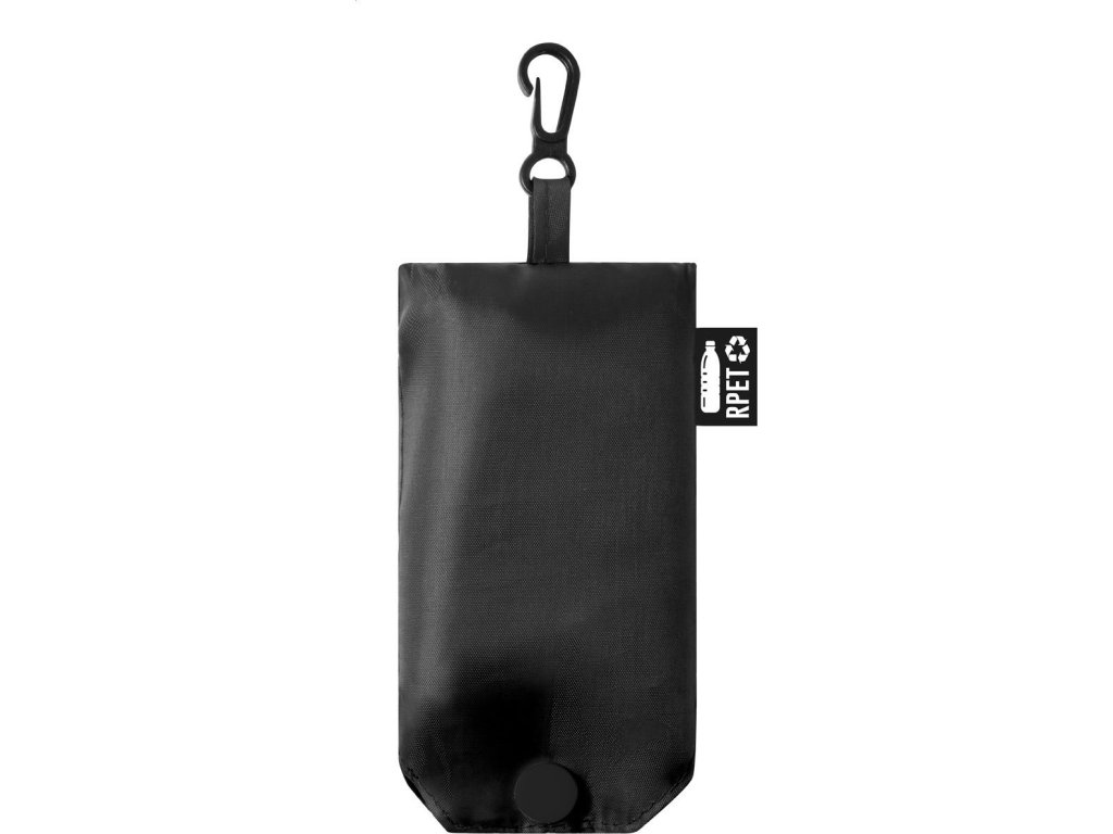 Skládací nákupní taška z RPET polyesteru, s etiketou s označením RPET.