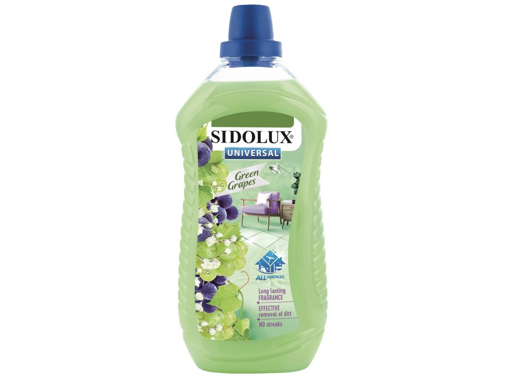 Univerzální čistič na všechny omyvatelné povrchy se svěží vůní zelených hroznů Univerzální čistič na všechny omyvatelné povrchy se svěží vůní zelených hroznů a unikátním složením Soda Power - zajišťuje účinné odstranění špíny.