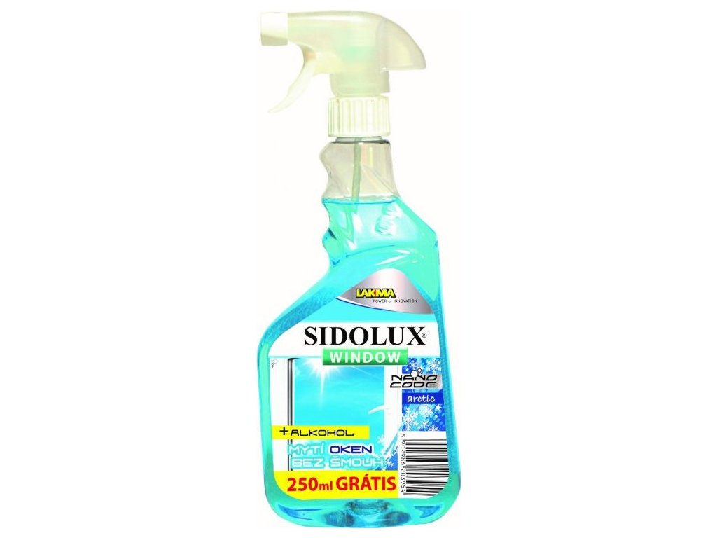 SIDOLUX Window je určený na mytí a leštění zrcadel, oken, dlaždic a jiných skleněných a lesklých povrchů. Obsažený alkohol a jedinečná receptura garantuje leštění beze šmouh. Součástí receptury prostředku je Nano technologie, která povrchu dodává částečné samočistící vlastnosti, kdy oddaluje znečištění povrchu skla a toto tak zůstává déle čisté.