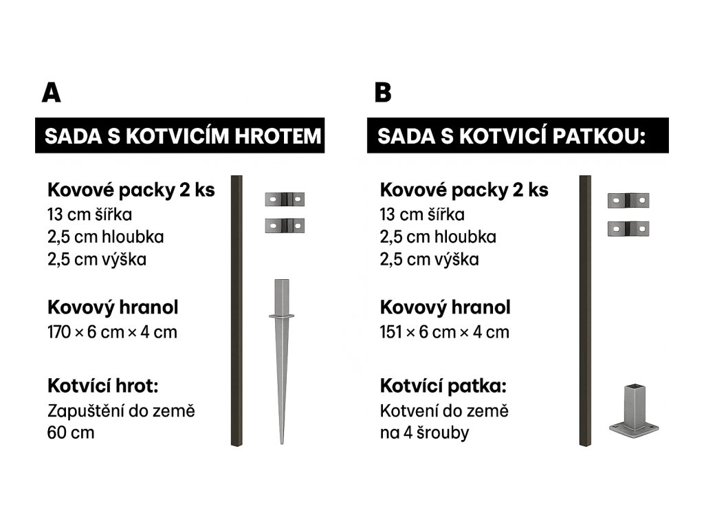 Sloupek a zemní kotva pro připevnění cedulí set SZ151