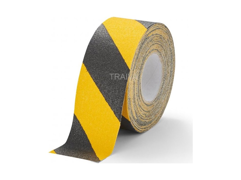 Vysoce odolná samolepicí protiskluzová páska PERMAFIX HAZARD - je vhodná pro zajištění kluzkých povrchů proti pádu a zranění. Lze použít pro zvýraznění okrajů schodů, žebříků, nakládací plošiny, nebezpečných prostor, schodišť.