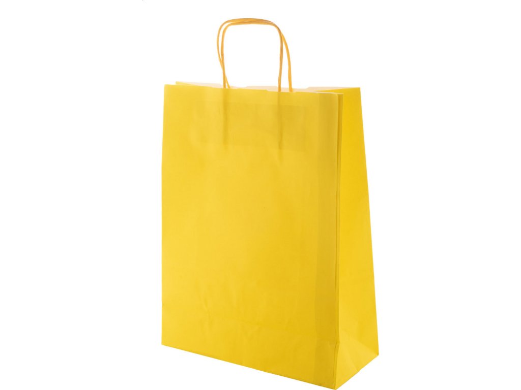 Barevná papírová taška s držadly z krouceného papíru.