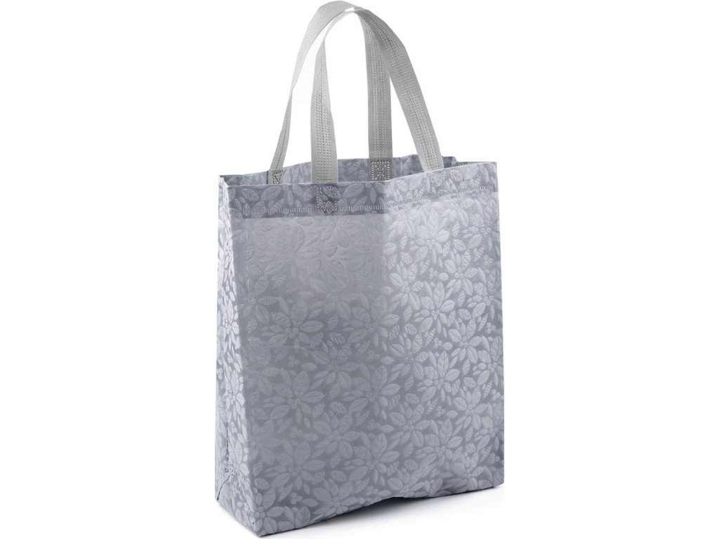 Do tašky z laminované netkané textilie se vzorem květů naskládáte plno věcí. Má dvě ucha, skvěle se složí třeba do kabelky. Díky opakovanému používání je šetrná k životnímu prostředí, stále častěji nahrazuje igelitové tašky. Není určená na těžké nákupy. Náš tip: tašku můžete využít i jako dárkovou, je velice pěkná na zabalení většího dárku.