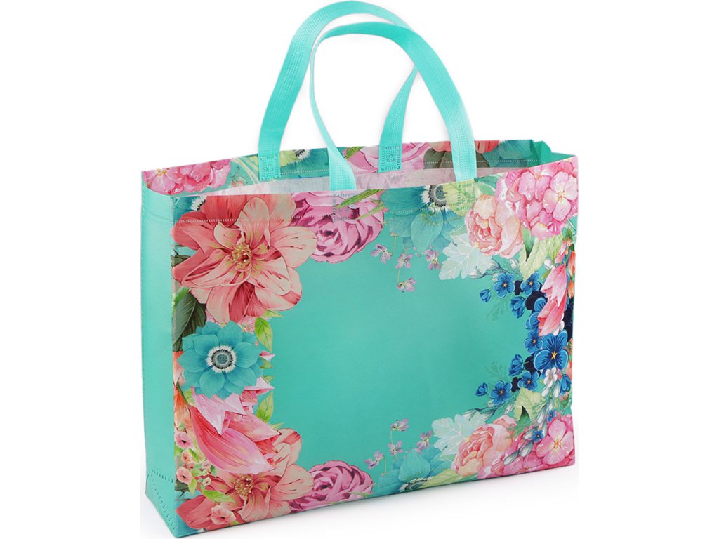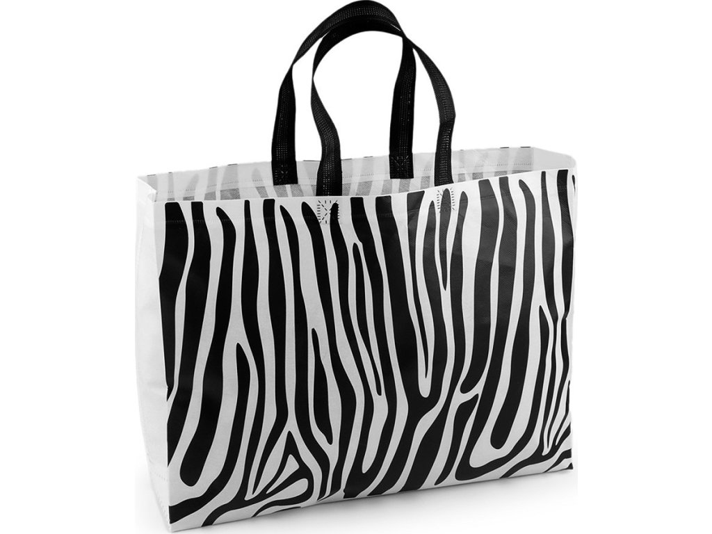 Do velké tašky z laminované netkané textilie s potiskem naskládáte spoustu věcí. Má dvě ucha, skvěle se složí třeba do kabelky. Díky opakovanému používání je šetrná k životnímu prostředí, stále častěji nahrazuje igelitové tašky. Hodí se k reklamním účelům. Není určená na těžké nákupy.