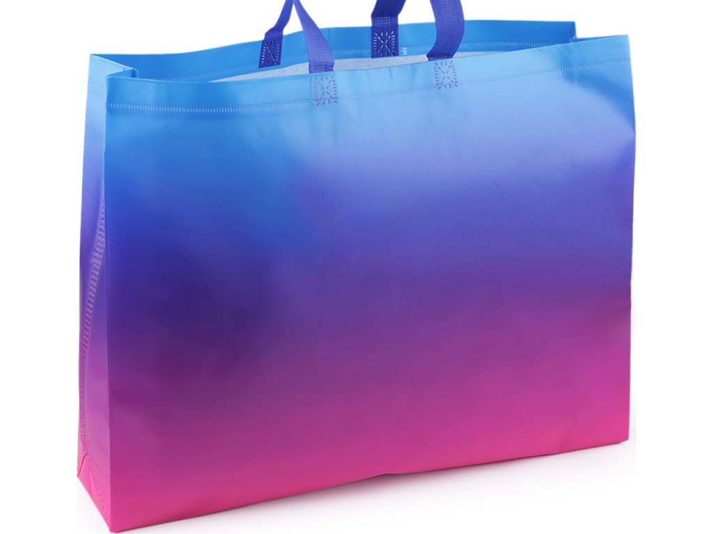 Velká taška z laminované netkané textilie vás nadchne svým velkým prostorem. Má dvě ucha, dá se složit třeba do kabelky. Díky opakovanému používání je šetrná k životnímu prostředí, stále častěji nahrazuje igelitové tašky. Hodí se k reklamním účelům. Není určená na těžké nákupy.