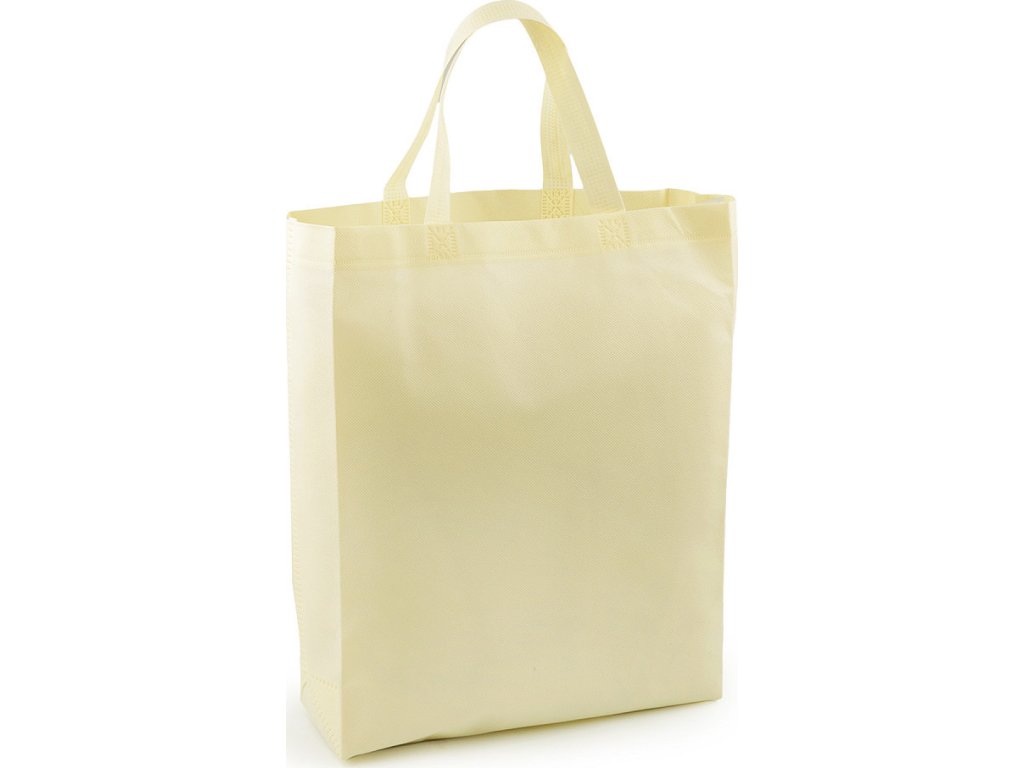 Do vysoké tašky z netkané textilie naskládáte spoustu věcí. Má dvě ucha, skvěle se složí třeba do kabelky. Díky opakovanému používání je šetrná k životnímu prostředí, stále častěji nahrazuje igelitové tašky. Hodí se k reklamním účelům. Není určená na těžké nákupy. Gramáž tašky je cca 650 g/m².