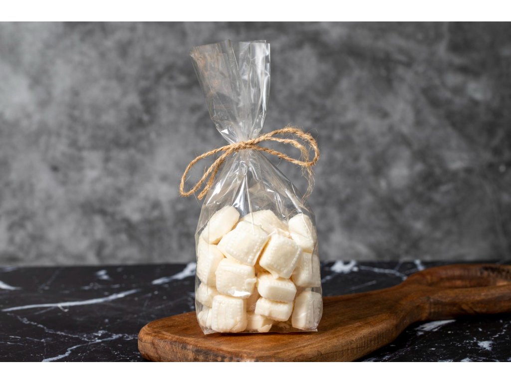 Po vložení obsahu sáček vytvoří obdelníkové dno, díky kterému nehrozí převrhnutí. Sáčky jsou vyrobeny z tatrafánu, syntetického průhledného celofánu z polypropylenu.