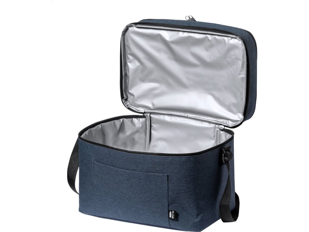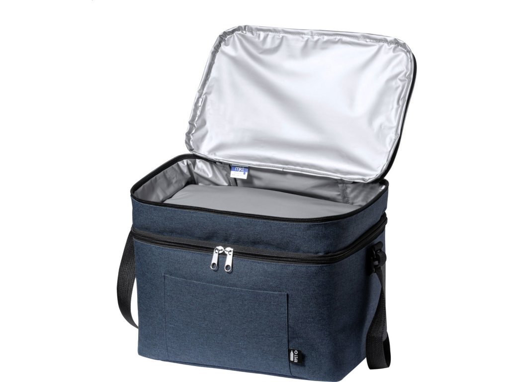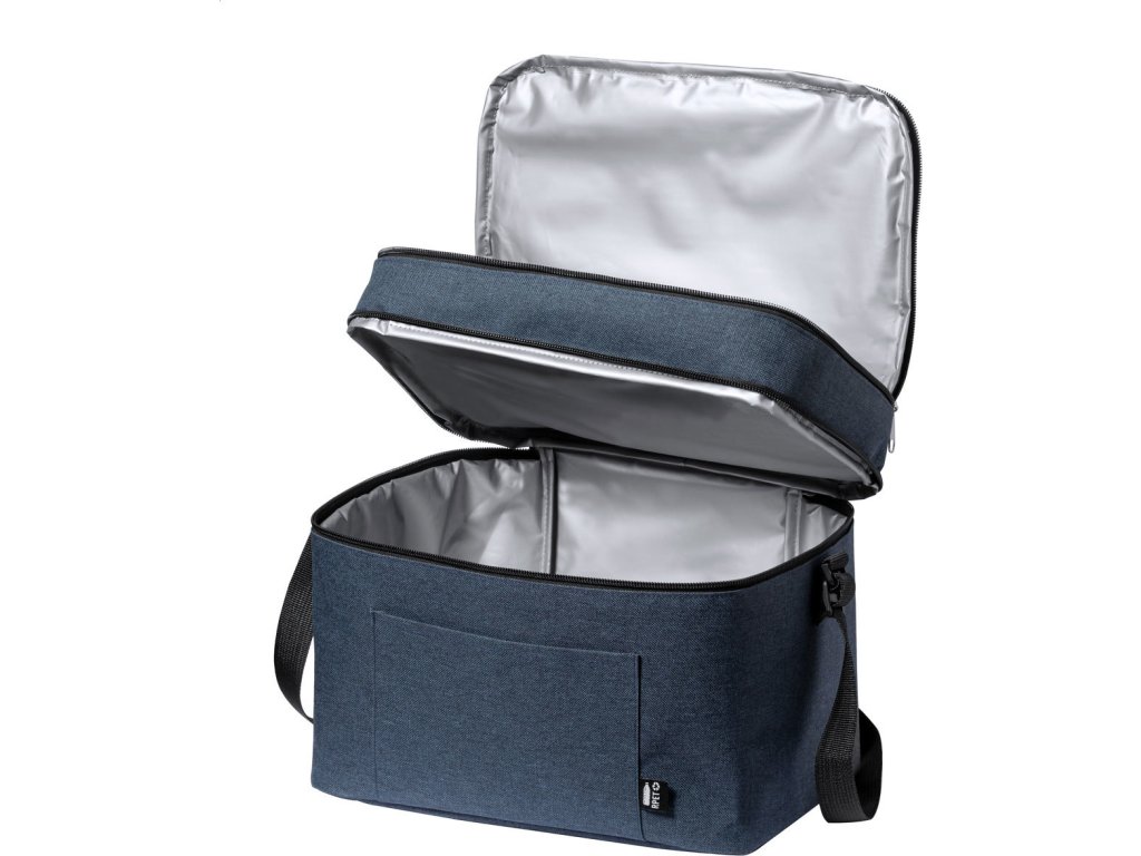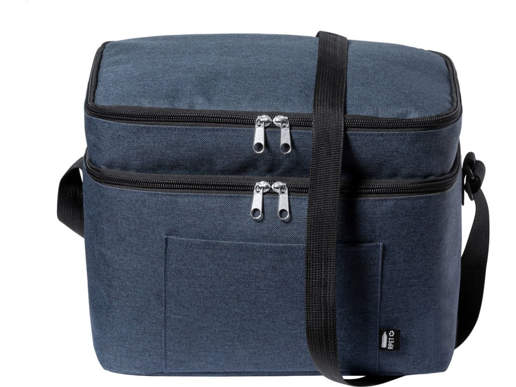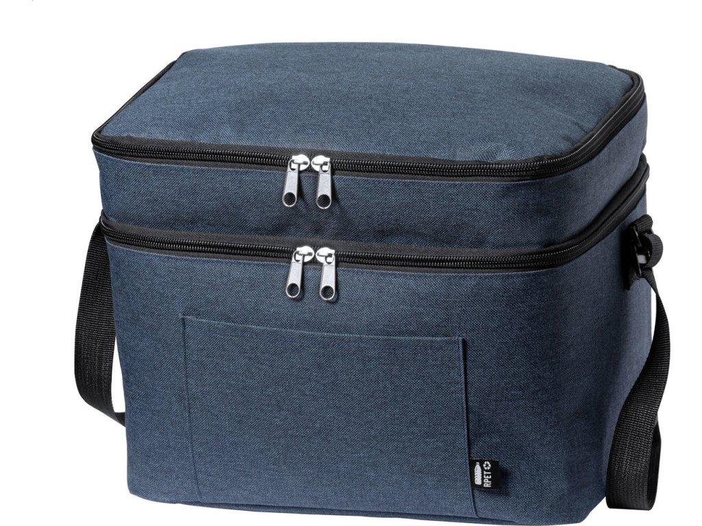 Chladicí taška z 600D RPET polyesteru s PEVA výstelkou, se 2 přihrádkami na zip a nastavitelným ramenním popruhem. S výrazným štítkem RPET.