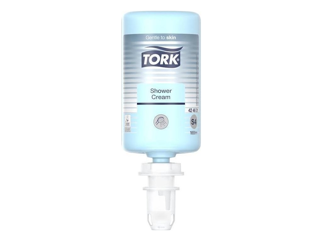 Tekutý sprchový gel Tork Premium, svěží unisex vůně, 1litr=1000 dávek, jednorázová láhev včetně dávkovací pumpičky, snížení spotřeby až o 50 %.