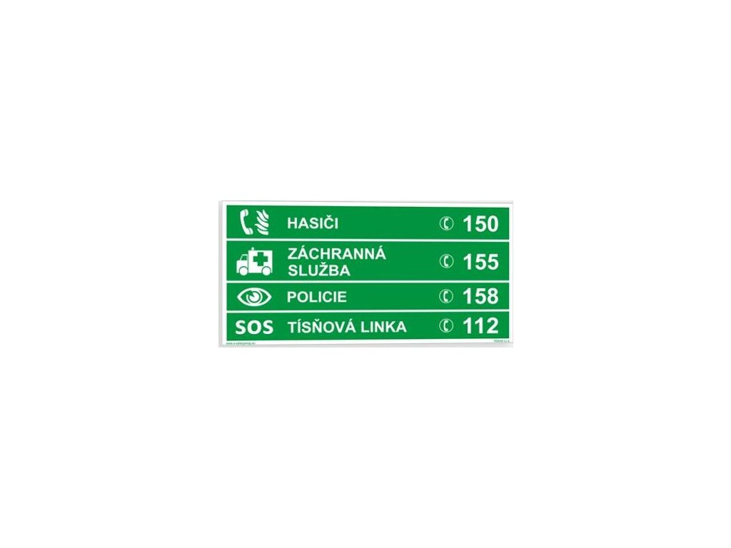 Tabulka s telefonními čísly pro přivolání pomoci.