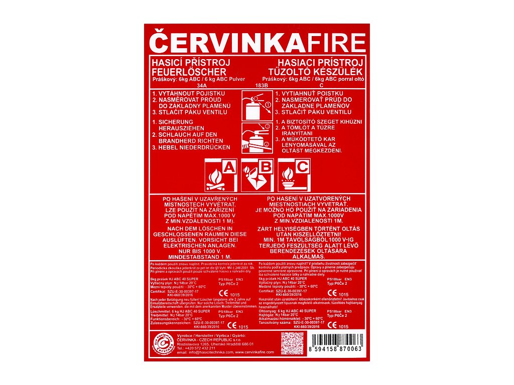 Typový štítek P6 34 A na hasicí přístroje