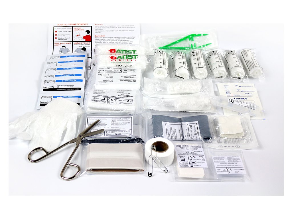Rozšířená lékárnička pro elektro provozy, určená i na vážnější úrazy a komplexní péči.