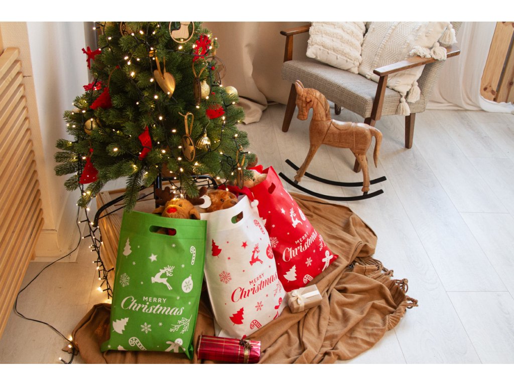 Nákupní taška z netkané textilie RPET s vánočním designem a vysekávanými uchy, 80 g/m².